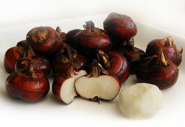 荸薺,又名 馬蹄、茨瓜兒(通俗叫法)、水栗、芍、鳧茈、烏芋、菩薺、地梨、皮丘兒、薺米,是莎草科荸 薺屬種。莎草科荸薺屬淺水性宿根草本,以 球 莖作蔬菜食用。古稱鳧茈(鳧茈),俗稱馬蹄,又稱地栗,因它形如馬蹄,又像栗子而 得名。稱它馬蹄,僅指其外表;說它像栗子,不僅是形狀,連性味、成分、功用都與栗子相似,又因它是在泥中結果,所以有地栗之稱。