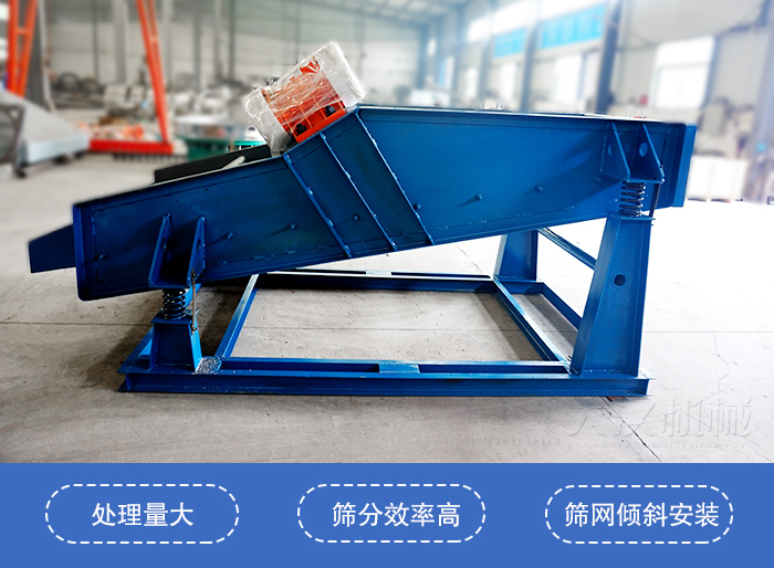 上振式直線振動篩有篩箱、振動電機、減振系統及底架等組成。篩箱由篩框、篩板、襯板等組成。篩機側板采用優質鋼板制作而成,側板與橫梁、激振器底座采用高強度螺栓或環槽鉚釘連接,結構合理,堅固耐用。