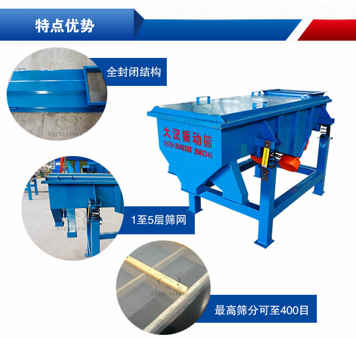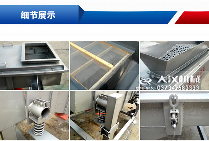 大漢小型直線振動篩按照材質可以分為碳鋼、不銹鋼以及全不銹鋼材質,其篩面層數也能設計成1-5層,可以同時篩選2-6種不同粒度規格的物料。