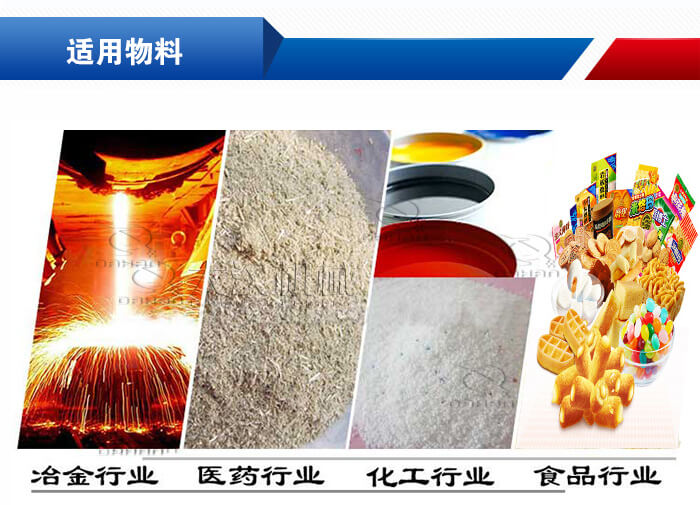 應用范圍:化工、食品、塑料、醫藥、冶金、玻璃、建材、糧食、化肥、磨料、陶瓷等行業