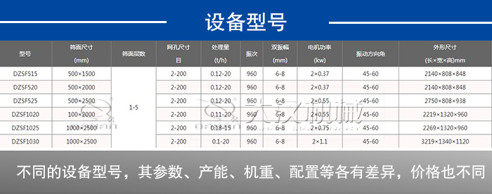 全不銹鋼直線振動篩型號多樣,產能在1-20t/h范圍內,同時支持專業定制,不同的設備型號,其參數、產能、機重、配置等各有差異,制造成本也會不樣,那么其價格當然不等。