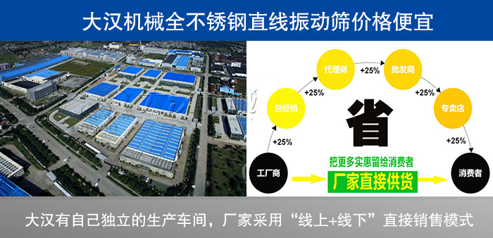 ②廠家采用“線上+線下”直接銷售模式,減少中間商賺差價環節,讓客戶購買更方便,同時全不銹鋼直線振動篩價格較市場價格要低2%-5%。