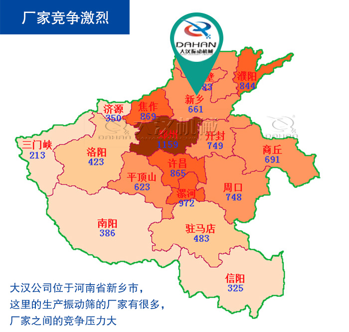 大漢公司位于河南省新鄉市,這里的生產振動篩的廠家有很多,廠家之間的競爭壓力大,廠家之間為了形成更大的優勢,在焦炭直線振動篩價格上降低了許多,以此來吸引用戶購買,所以新鄉焦炭振動篩價格普遍都不算太高,更利于用戶購買。