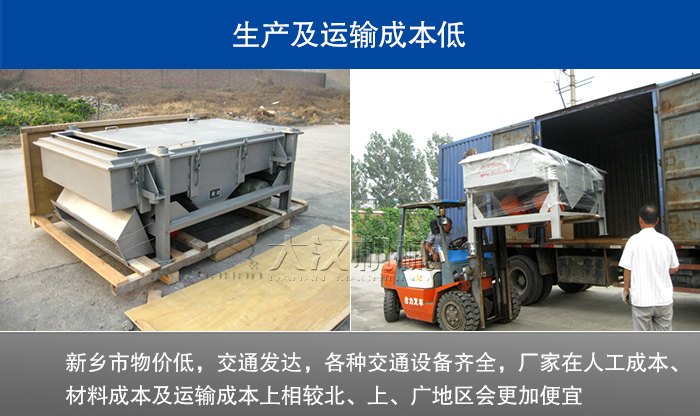 新鄉市物價低,交通發達,各種交通設備齊全,廠家在人工成本、材料成本及運輸成本上相較北、上、廣地區會更加便宜,所以在焦炭直線振動篩定價上自然要比這些地區要低許多。