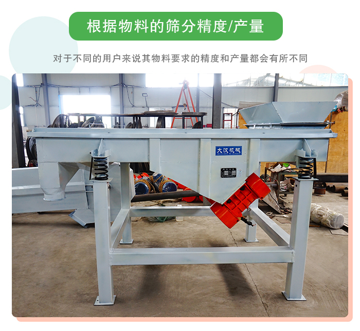 對于不同的用戶來說其物料要求的精度和產(chǎn)量都會有所不同,若想要篩分的粗糙點(diǎn)就可以選擇一些普通的振動篩,要是想要篩分的有多又精細(xì),就要對直線振動篩長和寬進(jìn)行設(shè)計(jì)。直線振動篩越長其篩分精度就越高,直線振動篩的寬度越寬其篩分的產(chǎn)量就越高,所以確定好直線振動篩的產(chǎn)量和精度。