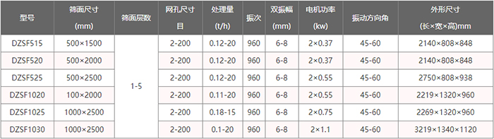 直線振動篩是一種產(chǎn)量大、效率高的篩分設(shè)備,該設(shè)備常見型號有DZSF520(寬500mm,長2000mm)、DZSF525、DZSF530、DZSF1020、DZSF1025、DZSF1030那么對于這么多型號我們該如何選擇呢?