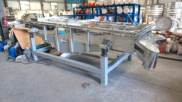 中藥飲片520直線振動篩電機,減震彈簧,篩網,快速夾具,進料口,出料口等細節展示