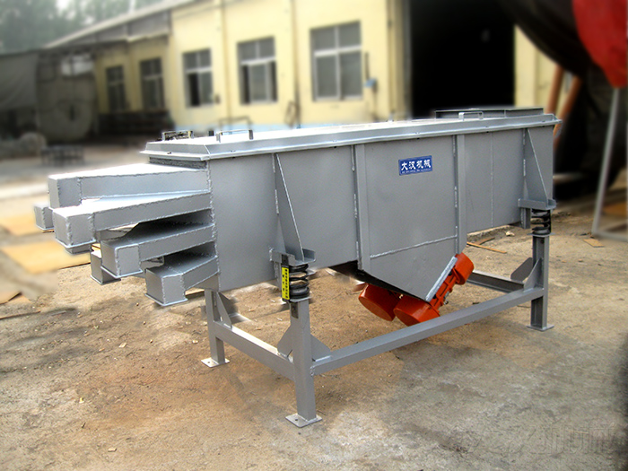 該機(jī)型號(hào)為DZSF-1020-6P型直線振動(dòng)篩,寬1000mm,長(zhǎng)2000mm。六層七出口,因此也叫多層直線篩,多用于物料的分級(jí),該設(shè)備整機(jī)為碳鋼材質(zhì),無(wú)衛(wèi)生級(jí)別特殊要求。